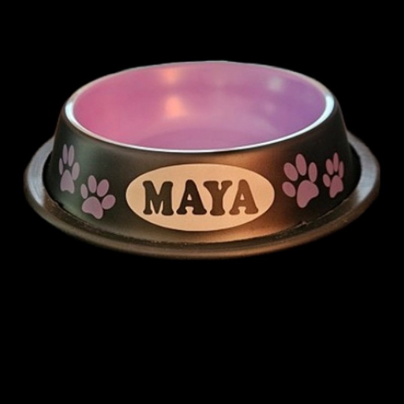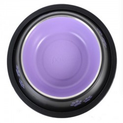 Gamelle personnalisée noire et violette décorée Patte antidérapante avec le nom de votre animal.
